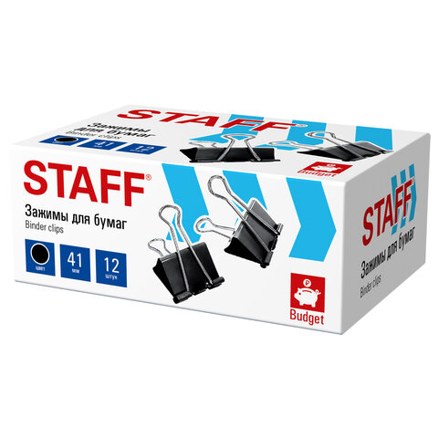 Купить Зажимы для бумаг STAFF ECO, КОМПЛЕКТ 12 шт., 41 мм, 200 листов, черные, картонная коробка, 274034 вы можете в компании Канцтовары Карандашов, оформив заказ в интернет магазине, или