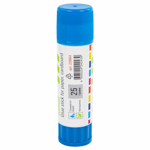 Объем - 25 г. Клей-карандаш STAFF Everyday легко наносится и распределяется по поверхности. Не токсичен и безопасен для здоровья. Удобен в использовании: он не пачкает руки, стол, одежду; легко удаляется при помощи воды. Плотно прилегающий колпачок предотвращает высыхание клея. Срок годности - 3 года.