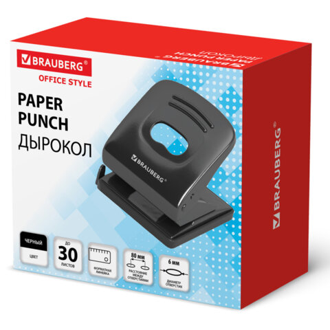 Купить Дырокол металлический BRAUBERG "Office style", до 30 листов, черный, 273954 вы можете в компании Канцтовары Карандашов, оформив заказ в интернет магазине, или