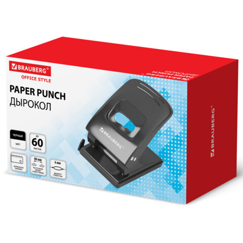 Купить Дырокол металлический BRAUBERG "Office style", до 60 листов, черный, 273956 вы можете в компании Канцтовары Карандашов, оформив заказ в интернет магазине, или