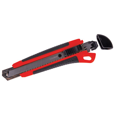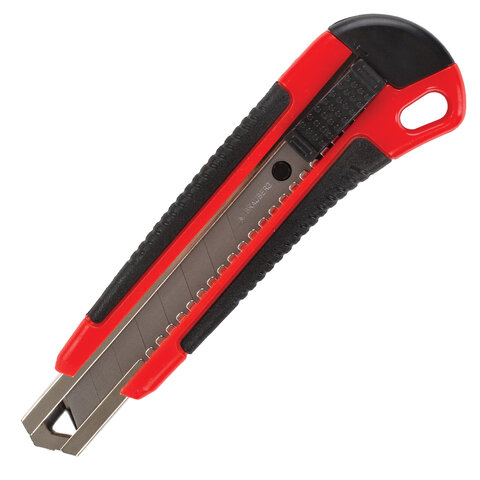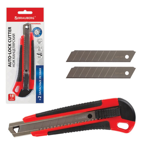 Купить Нож канцелярский 18 мм BRAUBERG "Universal", 3 лезвия в комплекте, автофиксатор, черно-красный вы можете в компании Канцтовары Карандашов, оформив заказ в интернет магазине, или