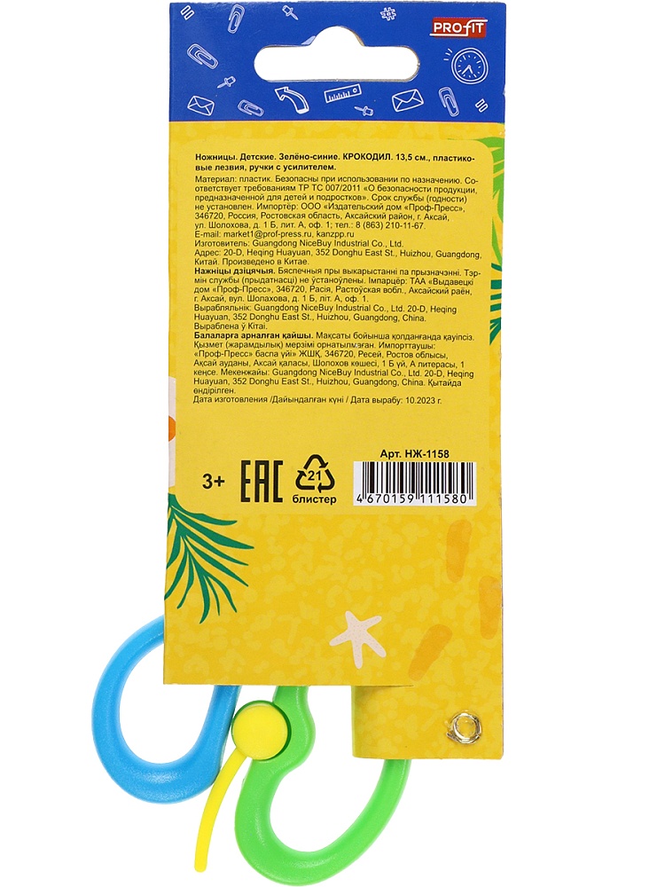 Купить Ножницы детские, зелёно-синие. КРОКОДИЛ 13,5 см (НЖ-1158)пл лез,ручк с усил,к/б вы можете в компании Канцтовары Карандашов, оформив заказ в интернет магазине, или