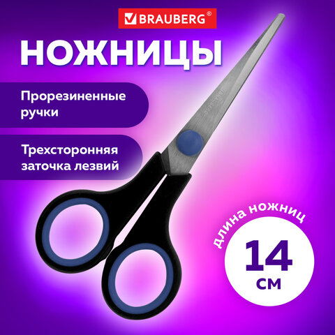 Купить Ножницы BRAUBERG "Soft Grip", 140 мм, черно-синие, резиновые вставки, 3-сторонняя заточка, 230760 вы можете в компании Канцтовары Карандашов, оформив заказ в интернет магазине, или