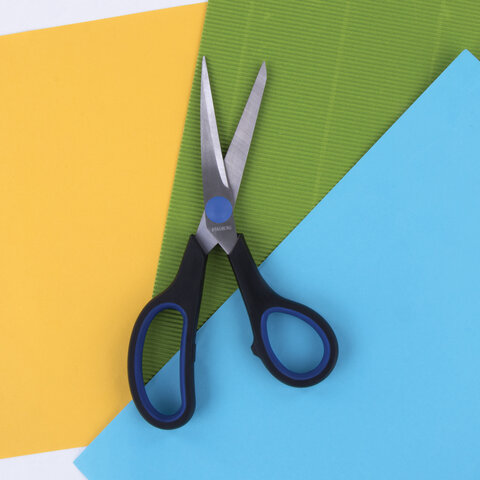 Ножницы BRAUBERG "Soft Grip", 165 мм, черно-синие, резиновые вставки, 3-х сторонняя заточка, 230761