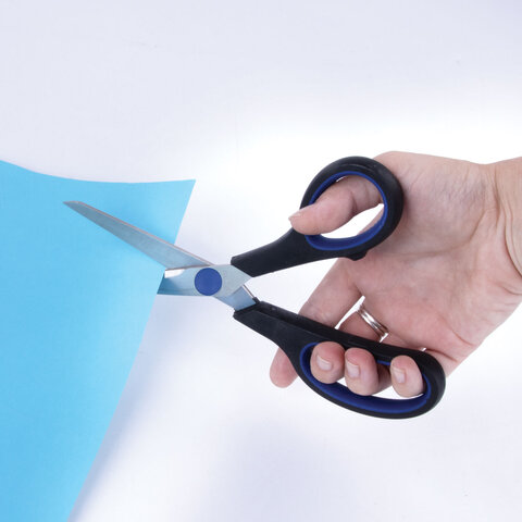 Купить Ножницы BRAUBERG "Soft Grip", 190 мм, черно-синие, резиновые вставки, 3-х сторонняя заточка, 230762 вы можете в компании Канцтовары Карандашов, оформив заказ в интернет магазине, или