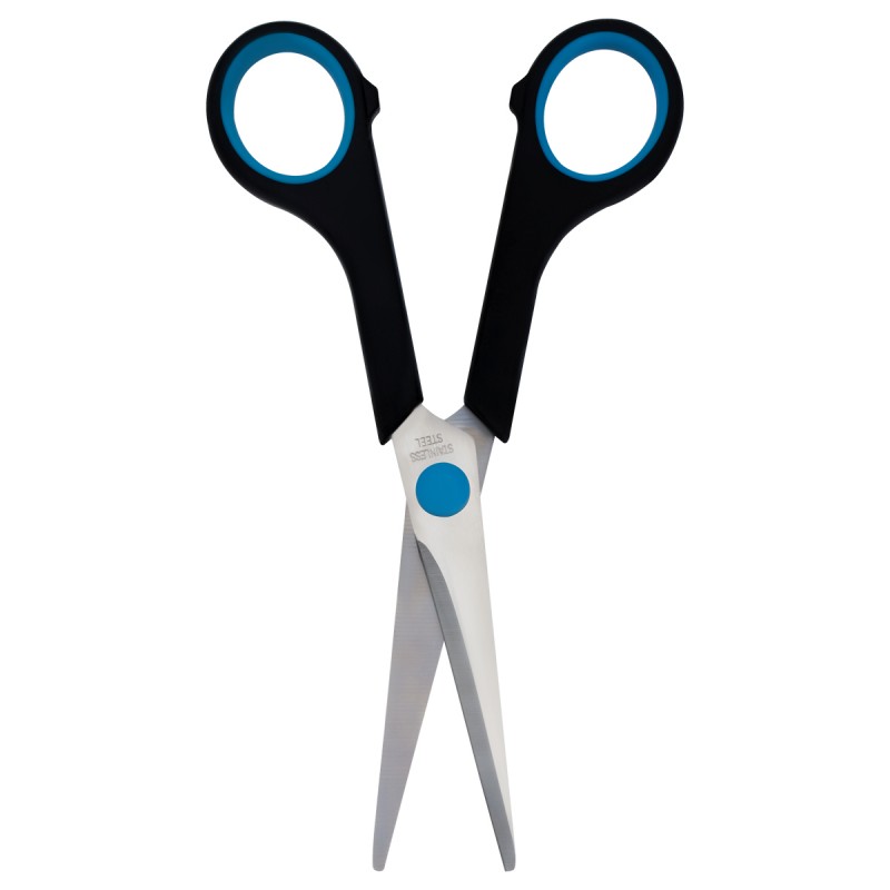 Ножницы BRAUBERG "Soft Grip", 165 мм, черно-синие, резиновые вставки, 3-х сторонняя заточка, 230761