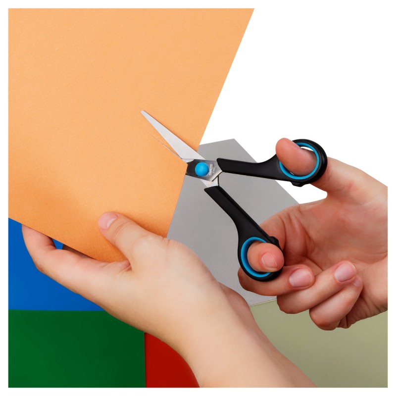Купить Ножницы OfficeSpace 16см, черные с синими вставками, ПВХ чехол с европодвесом 264901 вы можете в компании Канцтовары Карандашов, оформив заказ в интернет магазине, или