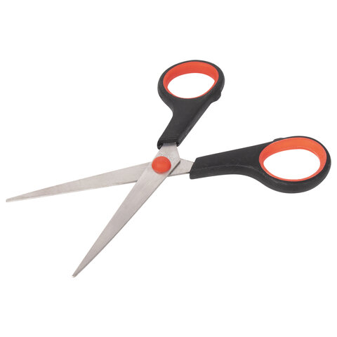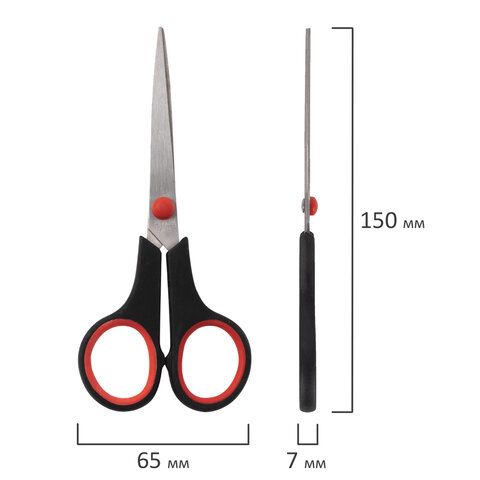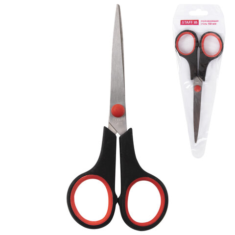 Ножницы STAFF EVERYDAY, 150 мм, бюджет, резиновые вставки, черно-красные, ПВХ чехол, 237497