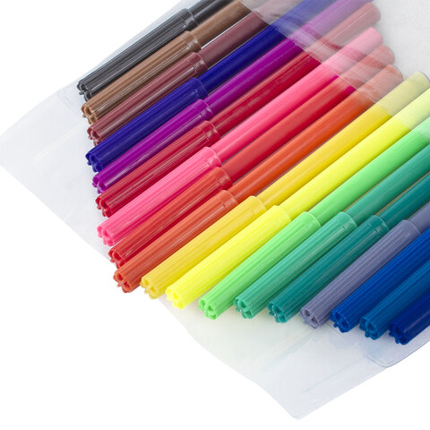 Набор фломастеров с чернилами на водной основе. Практичные и безопасные. Яркие и насыщенные цвета. Вентилируемый колпачок не причинит вреда при попадании в дыхательные пути. Фломастеры упакованы в прозрачный футляр с европодвесом. Нетоксичные.