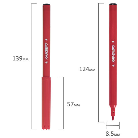 Обладают яркими насыщенными цветами в количестве 12 штук. Удобная круглая форма корпуса, длина которого 139 мм, а диаметр - 8,5 мм. Благодаря толщине линии письма 1 мм и диаметру пишущего узла 2,1 мм процесс раскрашивания становится легким. Длина письма составляет 600 м: такого расхода хватит надолго. Фломастеры изготовлены на водной основе, поэтому они безопасны и легко смываются с большинства материалов и кожи. Наконечник, устойчивый к продавливанию, не проваливается внутрь корпуса и не деформируется даже при сильном нажатии. Полипропиленовый корпус значительно продлевает срок службы фломастеров. Колпачок оснащен специальными прорезями для вентиляции, которые делают использование фломастеров более безопасным. Рекомендованы для детей от 3-х лет.
