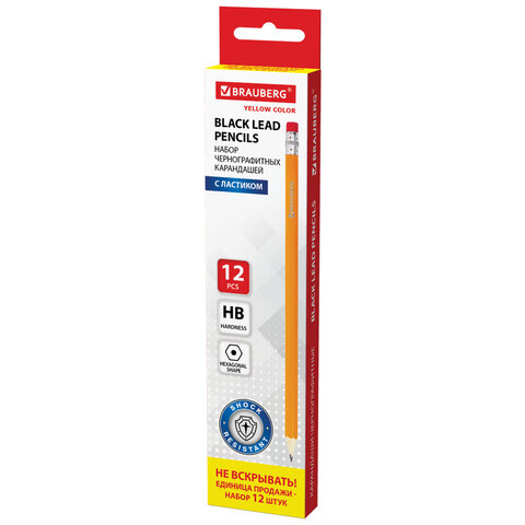 Купить Карандаши чернографитные простые с ластиком HB, ВЫГОДНАЯ УПАКОВКА КОМПЛЕКТ 12 штук, BRAUBERG, 180635 вы можете в компании Канцтовары Карандашов, оформив заказ в интернет магазине, или