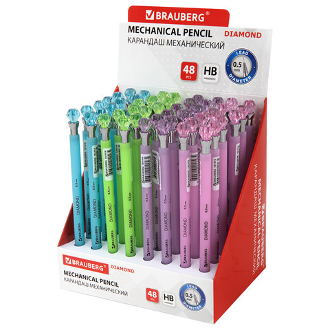 Купить Карандаш механический 0,5 мм, BRAUBERG "Diamond", корпус ассорти, хромированные детали, 181416 вы можете в компании Канцтовары Карандашов, оформив заказ в интернет магазине, или