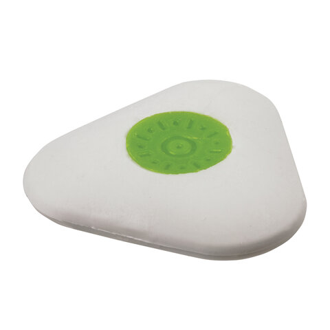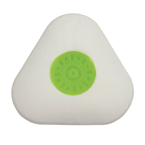 Предназначен для удаления надписей и рисунков, сделанных чернографитными карандашами. Имеет треугольную форму. Пластиковый держатель салатового цвета не только служит отличным дополнением к белому ластику, но и обеспечивает комфорт при письме. Размер - 35х35х10 мм. Ластики упакованы в дисплей.