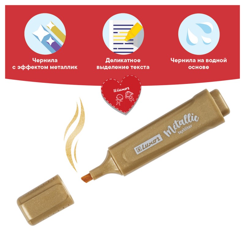 Купить Текстовыделитель Luxor "Textliter Metallic" золото, 1-5мм вы можете в компании Канцтовары Карандашов, оформив заказ в интернет магазине, или