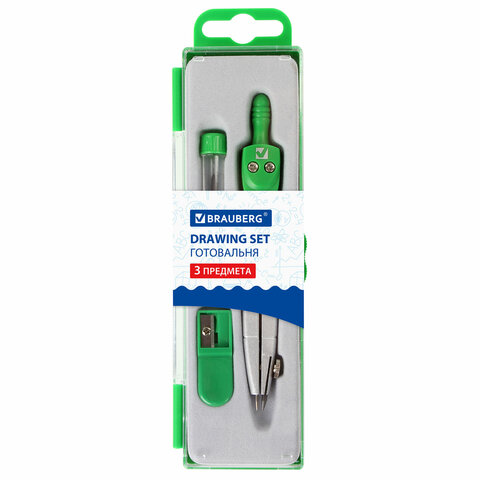 Купить Готовальня BRAUBERG "Klasse", 3 предмета: циркуль 115 мм, грифель, точилка, пенал с подвесом, вы можете в компании Канцтовары Карандашов, оформив заказ в интернет магазине, или