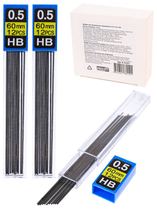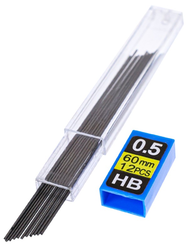 Грифели для механических карандашей предназначены для работы на бумаге и картоне. Подходят к механическим карандашам любых производителей. Твердость НВ. Толщина 0,5 мм. 12 грифелей в тубе.