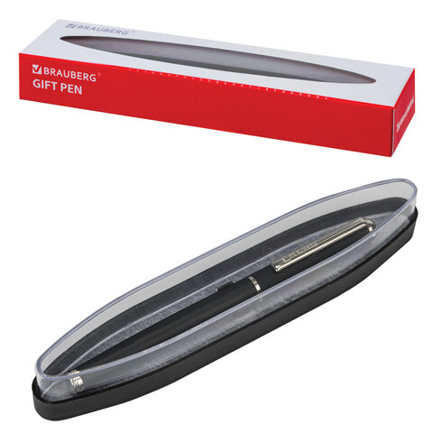 Ручка подарочная шариковая BRAUBERG "Larghetto", СИНЯЯ, корпус черный с хромированными деталями, лин