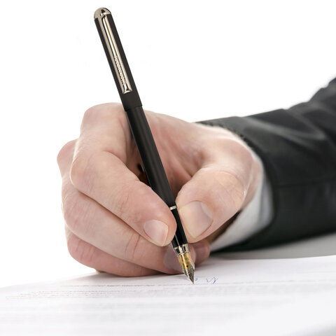 Купить Ручка подарочная перьевая BRAUBERG "Larghetto", СИНЯЯ, корпус черный с хромированными деталями, лини вы можете в компании Канцтовары Карандашов, оформив заказ в интернет магазине, или