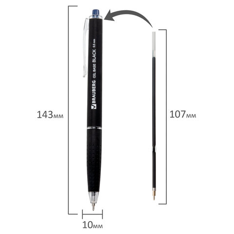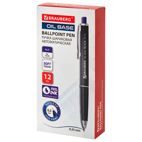 Купить Ручка шариковая автоматическая BRAUBERG "OIL-BASE BLACK", СИНЯЯ, пишущий узел 0,5 мм, линия письма 0,35 мм, 144499 вы можете в компании Канцтовары Карандашов, оформив заказ в интернет магазине, или