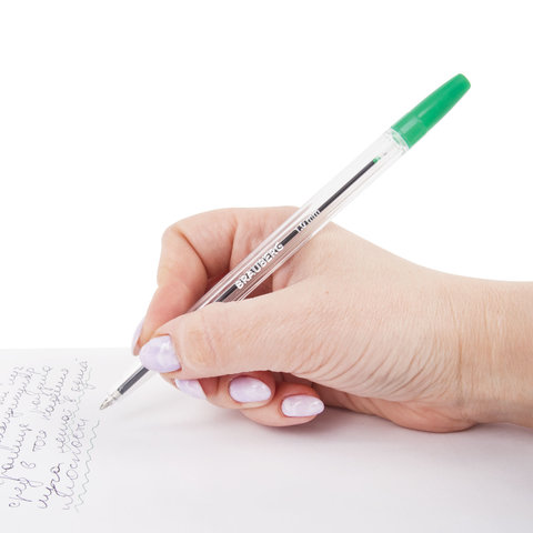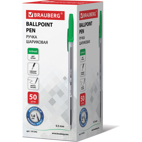 Ручка шариковая BRAUBERG Line, ЗЕЛЕНАЯ, корпус прозрачный, узел 1мм, линия письма 0,5мм, 141342