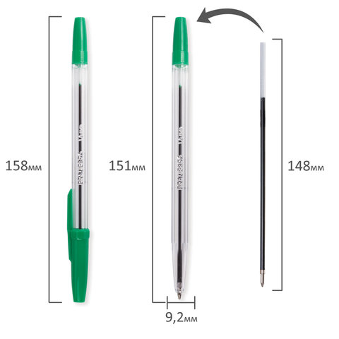 Шариковая ручка в прозрачном корпусе с деталями в цвет чернил. Сменный стержень длиной 152 мм. Диаметр пишущего узла 1 мм создает тонкую линию письма 0,5 мм. Цвет чернил - зеленый. Лаконичный дизайн соответствует офисному стилю.