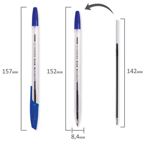 Шариковая ручка с прозрачным корпусом, вентилируемым колпачком и удобной трёхгранной зоной захвата с рифлением, препятствующим скольжению пальцев при письме. Ручка снабжена сменным стержнем 142 мм, что позволяет увеличить срок службы. Диаметр пишущего узла 0,7 мм создает тонкую линию письма, равную 0,35 мм.