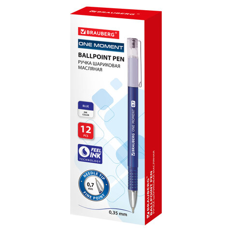 Купить Ручка шариковая масляная BRAUBERG "ONE MOMENT", СИНЯЯ, корпус синий, игольчатый узел 0,7 мм, линия письма 0,35 мм, 143002 вы можете в компании Канцтовары Карандашов, оформив заказ в интернет магазине, или