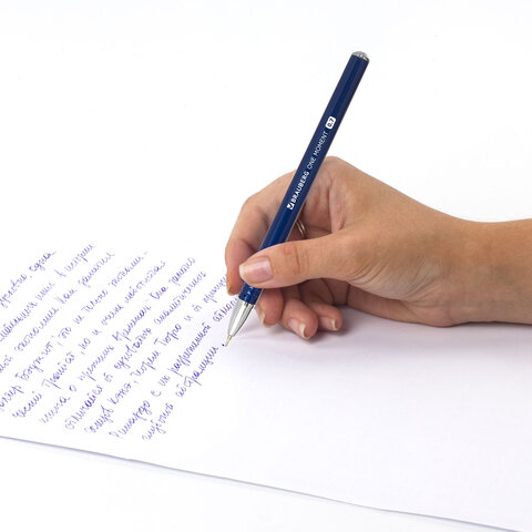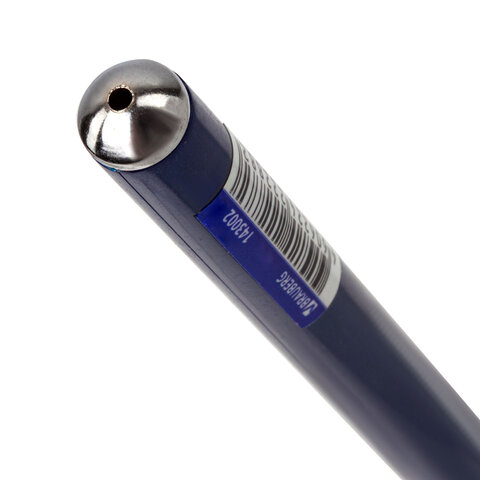 Шариковая масляная ручка с синим корпусом и рифлением в зоне захвата для удобства письма. Ручка обладает металлическим клипом для надежной фиксации на блокноте и ежедневнике. Одним из преимуществ данной модели является наличие сменного стержня, что делает её экономически привлекательной, а игольчатый наконечник обеспечивает равномерный расход чернил. Длина стержня составляет 130 мм. Диаметр пишущего узла 0,7 мм создает тонкую по толщине линию письма 0,35 мм. Цвет чернил – синий.