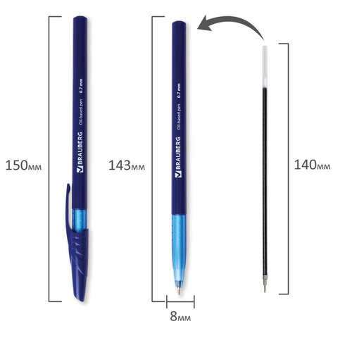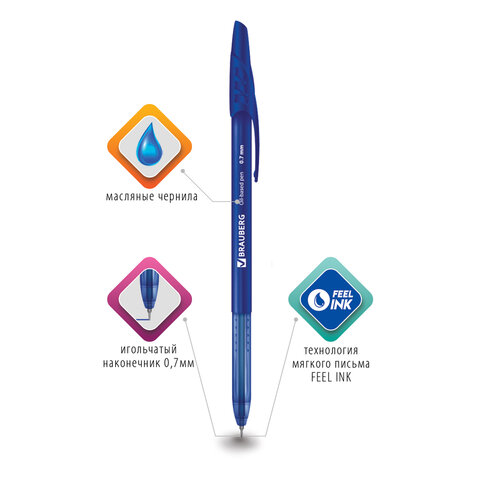Купить Ручка шариковая масляная BRAUBERG "Oil Base", корпус синий, узел 0,7 мм, линия 0,35 мм, синяя вы можете в компании Канцтовары Карандашов, оформив заказ в интернет магазине, или
