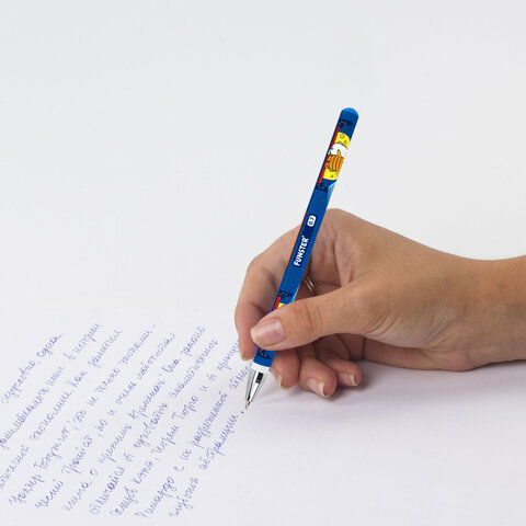 Шариковая ручка в круглом корпусе с покрытием soft-touch мягко ложится в руке, за счет чего процесс письма становится более комфортным. Аккуратная линия письма 0,35 мм достигается за счет стандартного наконечника диаметром 0,7 мм. Конструкция колпачка дополнена клипом, который позволяет закрепить ручку на тетради или папке без опасений забыть или потерять. За счет синих чернил ручка подходит как для школьников и студентов, так и для офисных сотрудников.