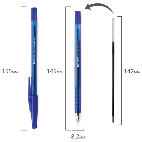 Шариковые ручки в тонированном корпусе с рифлением в области захвата для удобства при письме. Длина стержня составляет 142 мм. Диаметр пишущего узла 0,7 мм создает тонкую линию письма 0,35 мм. В набор входят следующие цвета чернил: синий, черный, зеленый, красный. Прозрачный корпус и цвет деталей ручки соответствуют цвету чернил.
