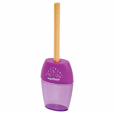 Точилка ЮНЛАНДИЯ "Карандашик", со стирательной резинкой, с контейнером, пластиковая, ассорти
