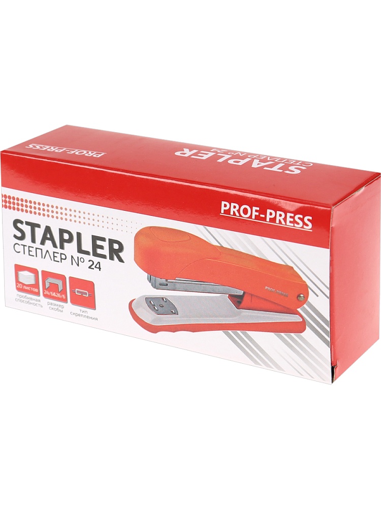 Cтеплер — незаменимый помощник в работе с большим объемом документов. Его рабочий механизм выполнен из металла, а корпус — из ударопрочного пластика. За счет компактного размера он не займет много места на рабочем столе. Размер скоб: №24. Упаковка: картонная коробка.