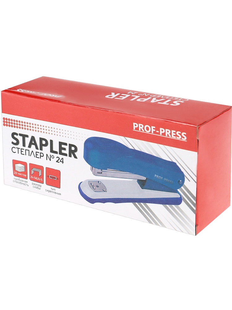 Cтеплер — незаменимый помощник в работе с большим объемом документов. Его рабочий механизм выполнен из металла, а корпус — из ударопрочного пластика. За счет компактного размера он не займет много места на рабочем столе. Размер скоб: №24. Упаковка: картонная коробка.