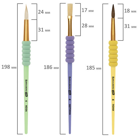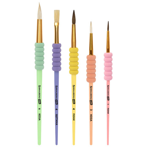 Купить Кисти c EVA-вставкой НАБОР 5 шт. (ПОНИ круглые №1, 4; КОЗА круглые №3, 6; ЩЕТИНА плоская №4), BRAUBERG KIDS, 201091 вы можете в компании Канцтовары Карандашов, оформив заказ в интернет магазине, или