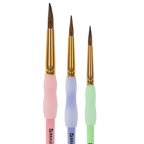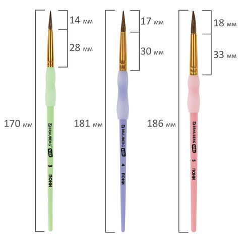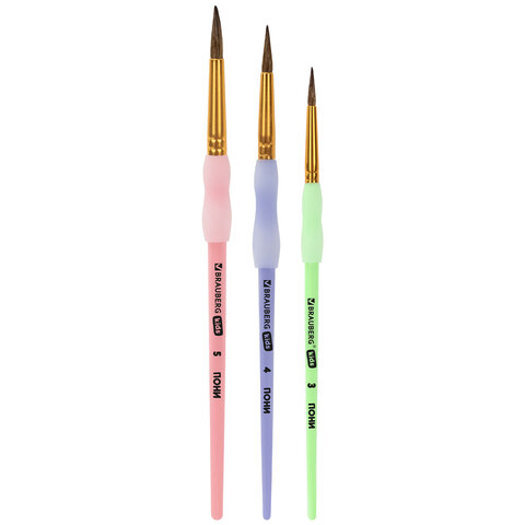 Купить Кисти c силиконовой вставкой ПОНИ набор 3 шт. (круглые №3, 4, 5), блистер, BRAUBERG KIDS, 201096 вы можете в компании Канцтовары Карандашов, оформив заказ в интернет магазине, или