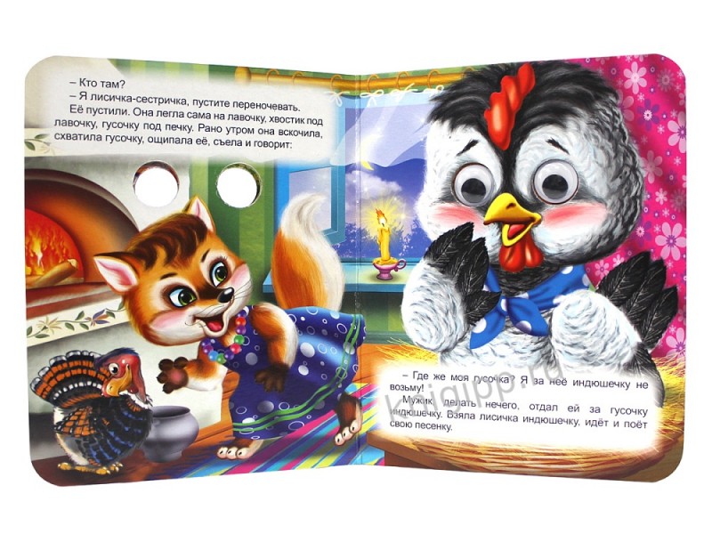 Замечательная серия картонных книг с глазками обязательно порадует вашего малыша. Такая книжка станет любимой игрушкой ребёнка. Страницы сделаны из плотного картона, поэтому издание прослужит долго, не порвётся и не испортится. В книгах серии вы найдёте самые любимые сказки, стихи и потешки.