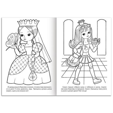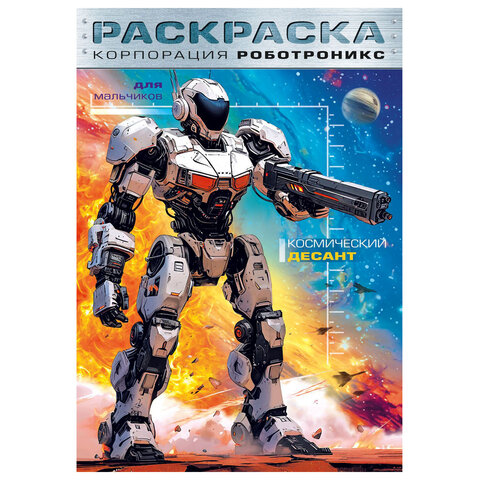 Книжки-раскраски для детей младшего школьного возраста – сюжеты "Морские пираты", "Звёздные корабли", "Космические роботы" для мальчиков и "Милые принцессы" для девочек.