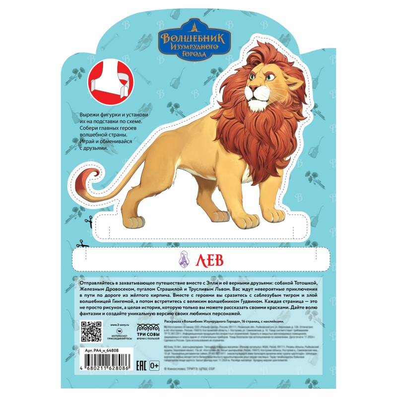 Раскраска фигурная с наклейками «Волшебник Изумрудного города» от бренда «ТРИ СОВЫ» формата А4 – это настоящая находка для тех, кто хочет увлечь своего ребёнка на долгое время. Внутренний блок состоит из 16 страниц офсетной белой бумаги, которая подходит для раскрашивания карандашами и фломастерами. В конце книги есть цветные наклейки, глядя на которые ребёнок сможет раскрасить героя в нужные цвета. Обложка из мелованной бумаги точно понравится детям. На оборотной стороне располагаются фигуры главных героев, которые можно вырезать, установить на подставку и играть весело вместе с друзьями. Подходит для детей от 6 лет.