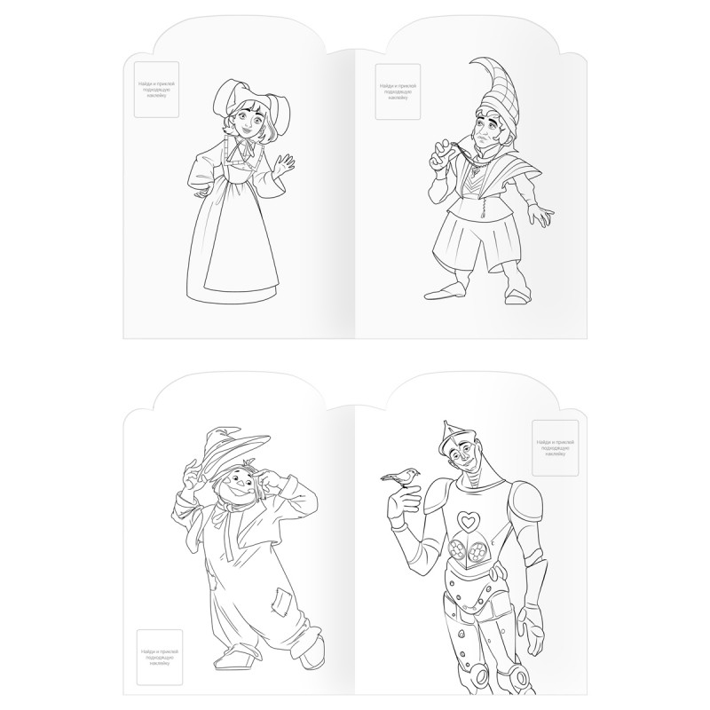 Раскраска фигурная с наклейками А4, 16 стр., ТРИ СОВЫ "Волшебник Изумрудного города"