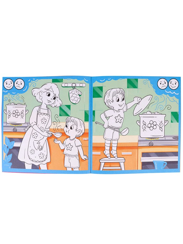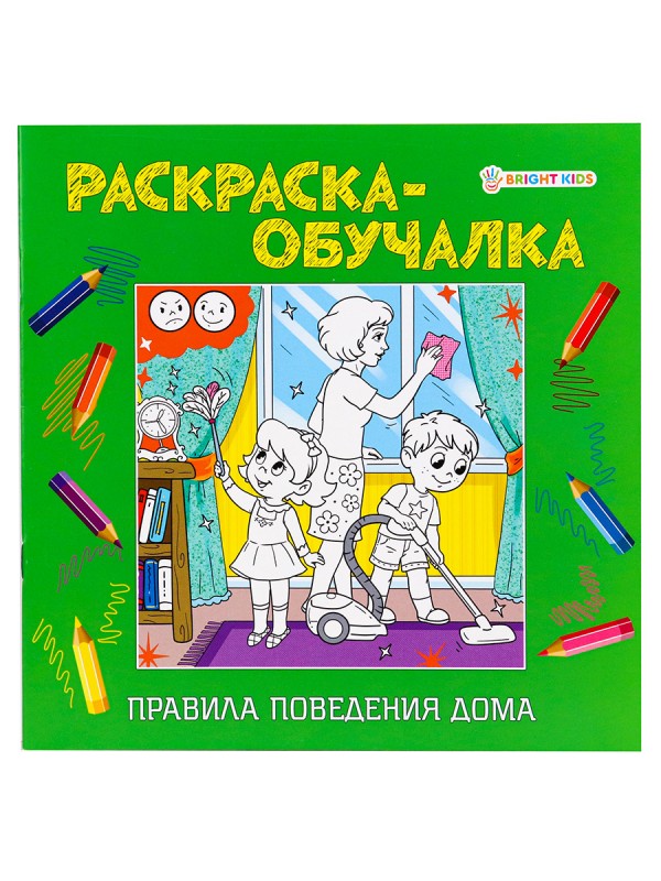 Раскраска-обучалка "ПРАВИЛА ПОВЕДЕНИЯ" ДОМА (Р-1807) 8л, на скреп,обл.-целл.карт,блок-офсет 215х215