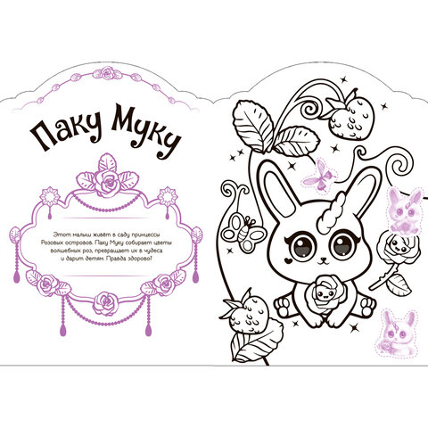 Ребенок будет увлеченно раскрашивать волшебных героев, включая фантазию и воображение, и приклеивать яркие наклейки на страницы книги, делая сказочный мир уютнее и наряднее. За такими занятиями ребенок проведет время не только интересно, но и с пользой.