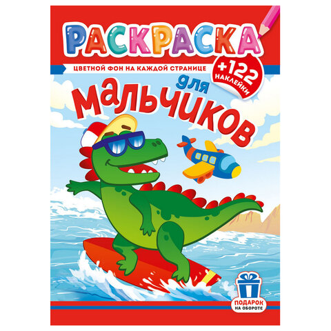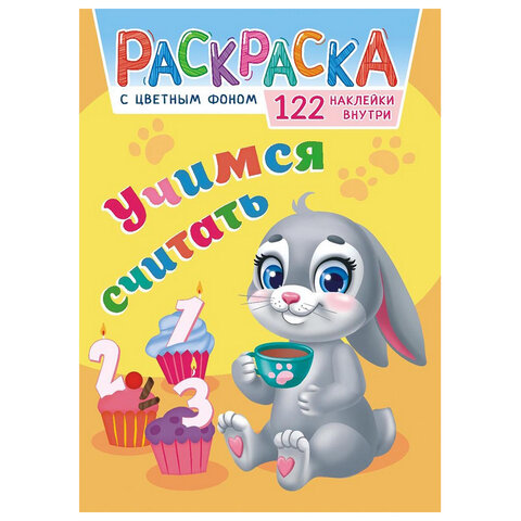 Раскраска с заданиями +122 наклейки "Яркие дизайны" с цветным фоном, А4, 16 стр, 21х29 см, АССОРТИ, ЛиС