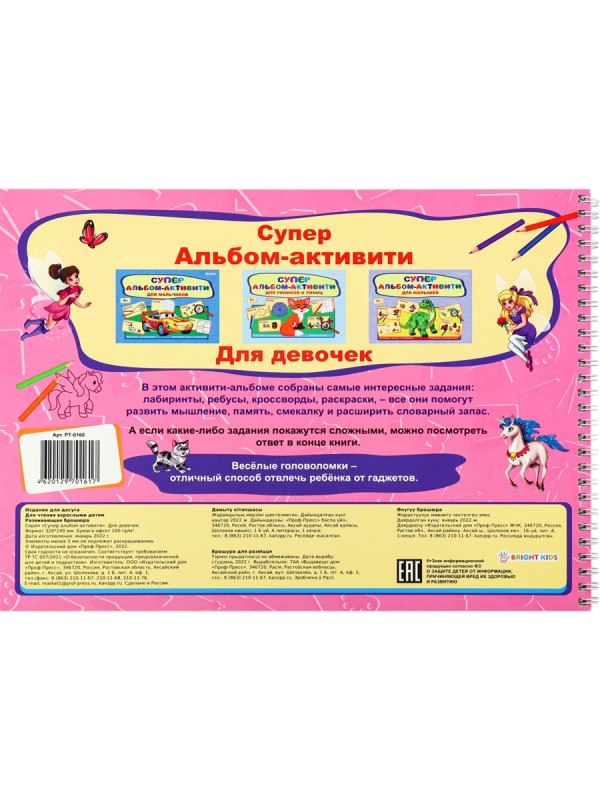 Купить Активити-альбом А4 гориз. ДЛЯ ДЕВОЧЕК (РТ-0160)32л,бл.офс100г,подл,обл-цел к200г,уф-лак,320х240,гр вы можете в компании Канцтовары Карандашов, оформив заказ в интернет магазине, или