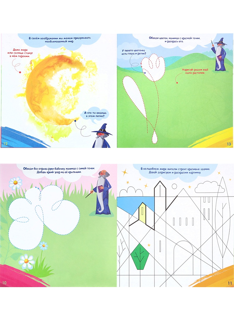 Брошюра "Волшебный мир" из серии "Развиваем воображение" создана для маленьких исследователей. Книга поможет ребёнку через творчество развить образное мышление, расширить фантазию, развить мелкую моторику. Дети не боятся сделать ошибку, так как формат серии построен в игровом стиле. Формат: А4, 8 листов. Внутренний блок: офсет. Обложка выполнена из полноцветного целлюлозного картона. Крепление: скрепка. Размер: 215х215 мм.
