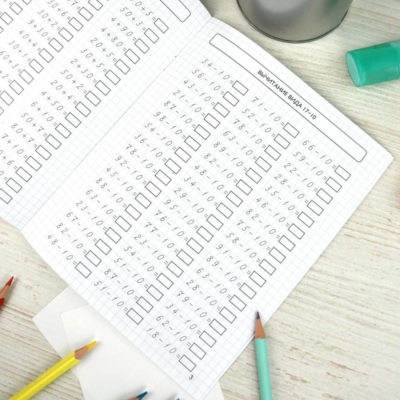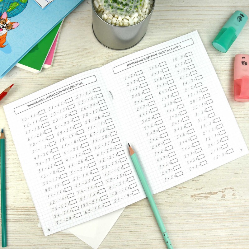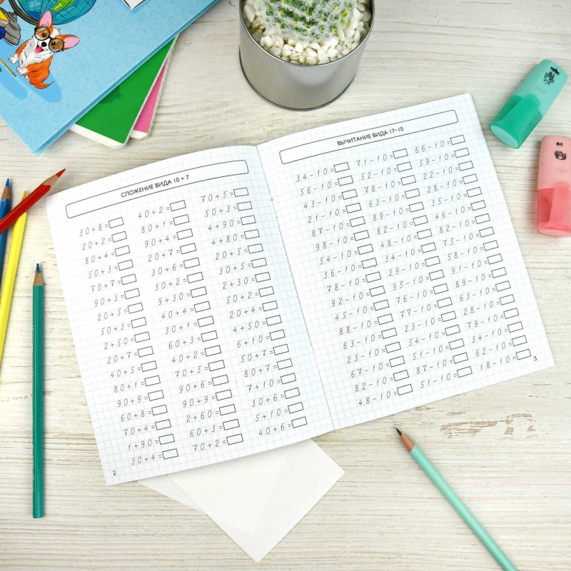 Тренажёр содержит более 500 примеров на все виды арифметических действий. Ребёнок автоматизирует навыки табличного и внетабличного умножения и деления, сложения и вычитания в пределах 100. При выполнении заданий не только отрабатываются вычислительные навыки, но и формируется математическая зоркость, тренируется внимание, развивается оперативная память ребёнка. Тренажёр будет полезен ученикам начальной школы.