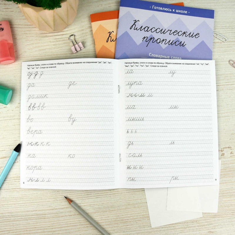 Прописи с заданиями для детей. Серия "Классические прописи" арт. 70128 ИСПРАВЛЕНИЕ ПОЧЕРКА /165×205 мм, 8 л., блок - офсет 100 г/м², печать в одну краску, обл - мелованная бумага 170 г/м², мягкий переплёт (2 скобы),