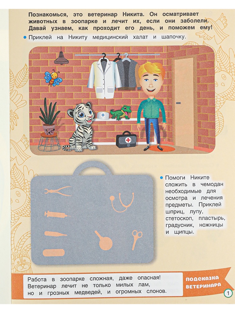 Серия развивающих брошюр "Я-ветеринар" окажет неоценимую помощь для общего развития ребёнка. Дети в игровой форме приобщаются к миру животных, открывая для себя всё больше интересного.Формат А4, 8 листов + 2 листа наклеек. Внутренний блок: офсет на скрепке. Обложка: целлюлозный картон, покрытый ультрафиолетовым лаком. Размеры: 198х260 мм.