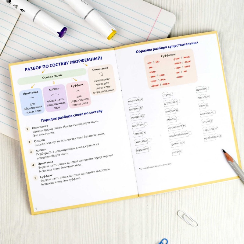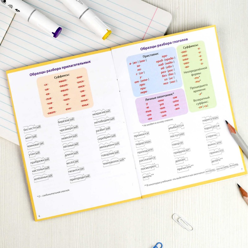 Справочное издание для детей. Серия "Шпаргалки школьника" арт. 71680 РАЗБОРЫ СЛОВ И ПРЕДЛОЖЕНИЙ /120х170 мм, 8 л., блок - офсет 100 г/м², полноцветная