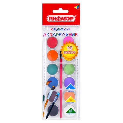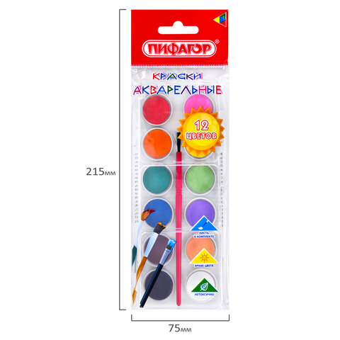 Купить Краски акварельные ПИФАГОР "СОЛНЫШКО", 12 цветов с кистью, круглые кюветы, пенал, 192635 вы можете в компании Канцтовары Карандашов, оформив заказ в интернет магазине, или